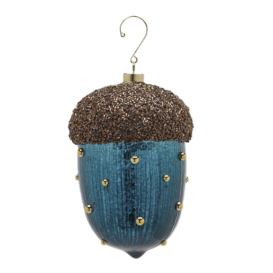 Bola de cristal para decoración de árbol de navidad, con forma de bellota. Color azul.