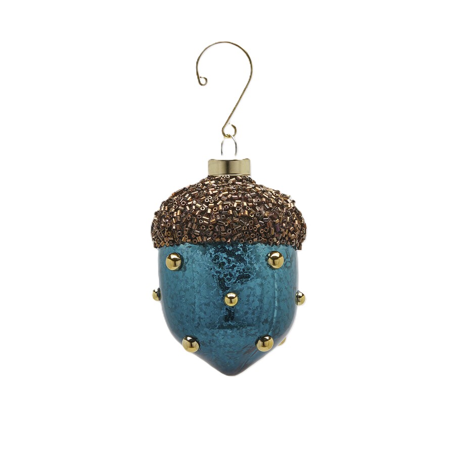 Bola de cristal para árbol de navidad con forma de bellota. Color azul.