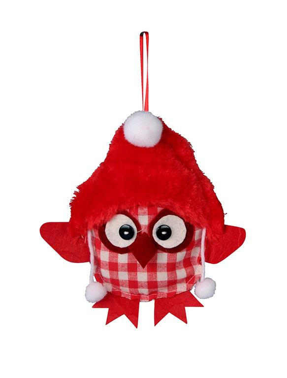 Buho de tela colgante 16x15cm Rojo