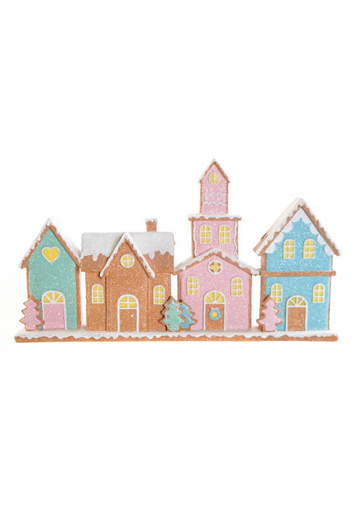 Divertida decoración de navidad , imitando un pueblecito de galletas nevadas.