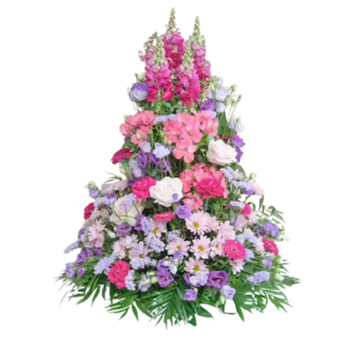 Arreglo en tonos variados y vibrantes, que evocan un recuerdo lleno de luz y esperanza. Una elección que aporta calidez en el homenaje.