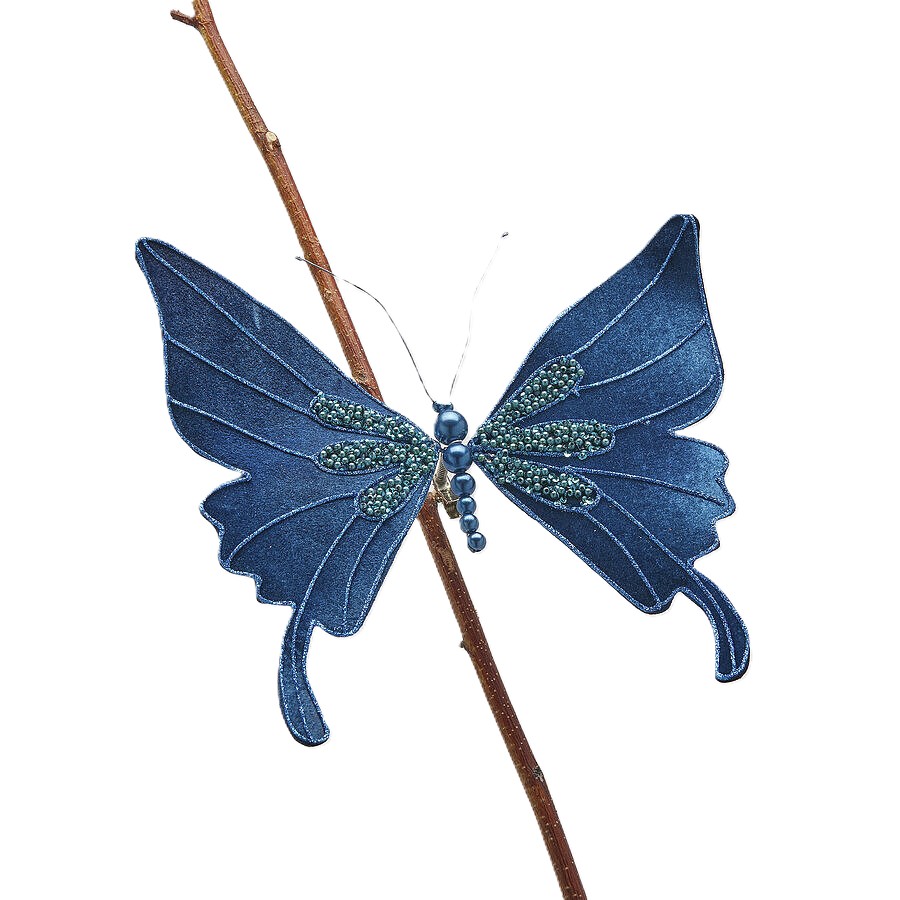 Decoración mariposa con clip, color azul.