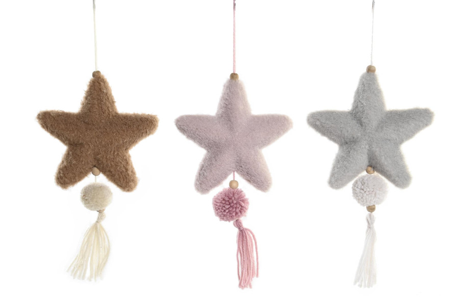 Estrella poliéster colganteColores surtidos en marrón, rosa y grisDimensiones : 25cm x 14cm x 4cm