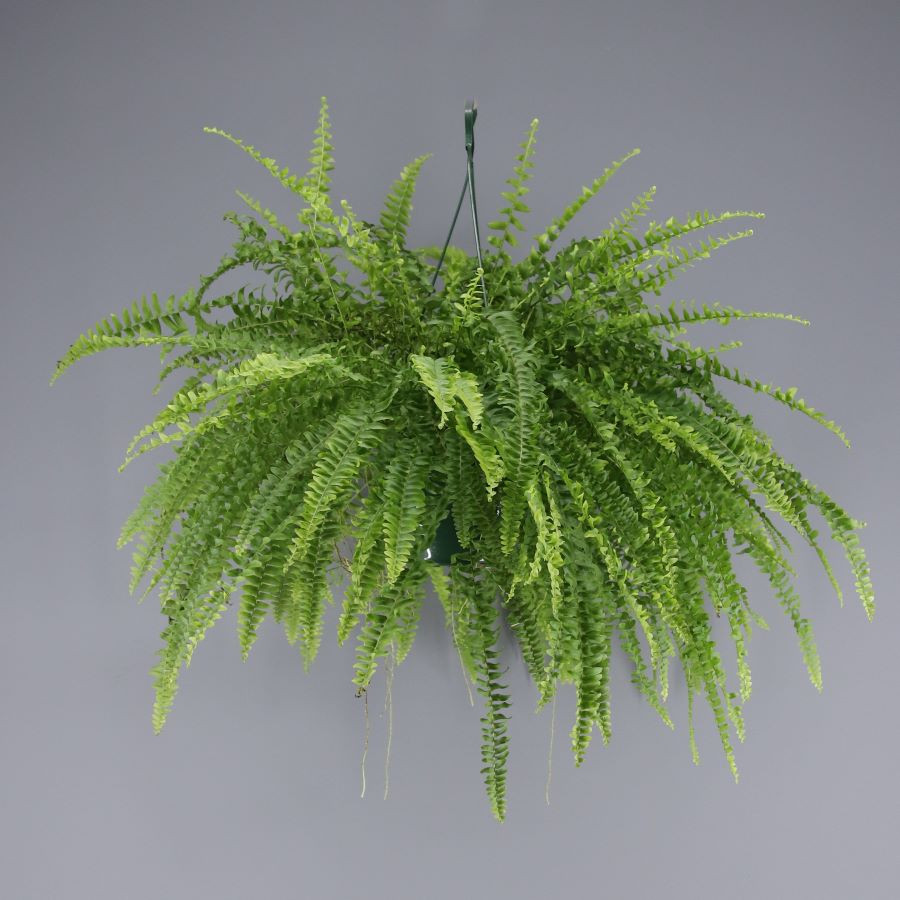 Este popular helecho colgante (Nephrolepis) es perfecto para crear ambientes exóticos gracias a sus hojas largas y colgantes. Sus cuidados son muy sencillos, tan solo tendrás que regarlo de forma frecuente y asegurarte de que tiene un sustrato rico en nutrientes. Aunque podemos tenerla al sol, es mejor que no le llegue la luz de forma directa para no dañar sus hojas.