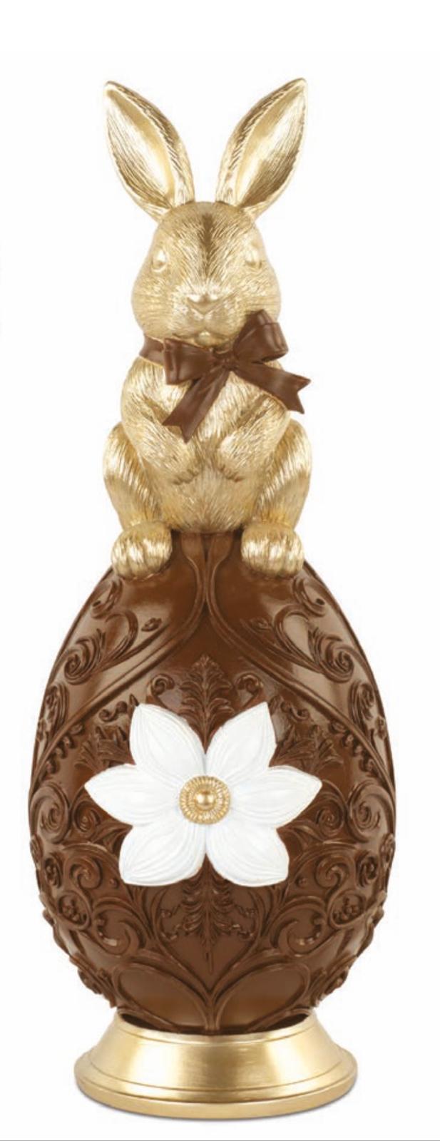 Decoración de huevo y conejo de chocolate y oro, de resina.