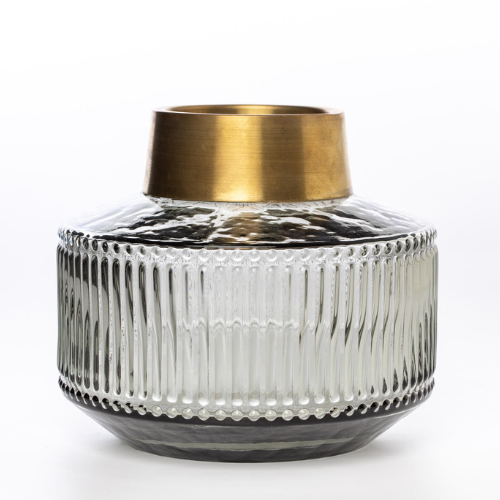 Jarrón cristal artesanal Jarrón bajo cuello metal dorado 16 x 16 x 14 cm