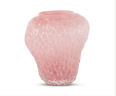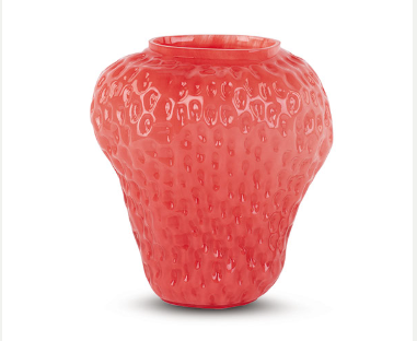 Jarrón de cristal con forma de fresa.