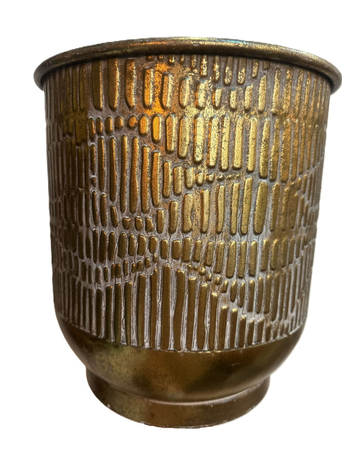 Macetero de metal desgastado.
