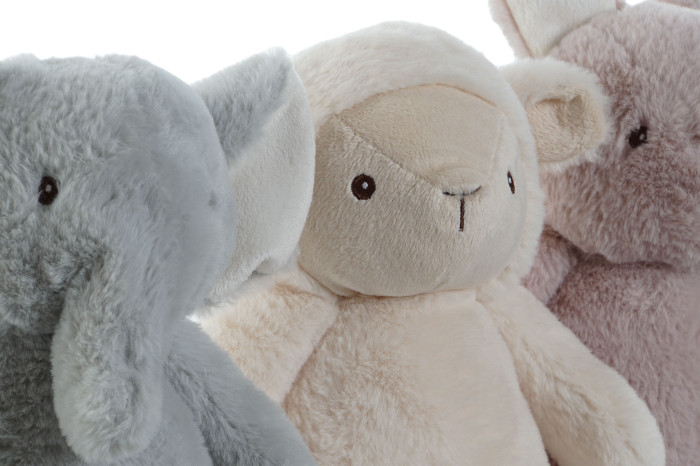 Peluches de poliéster, animales surtidos.