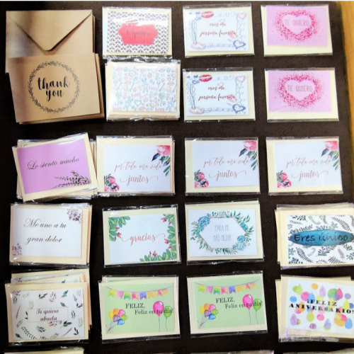 Tarjetas variadas con mensajes dedicados.
